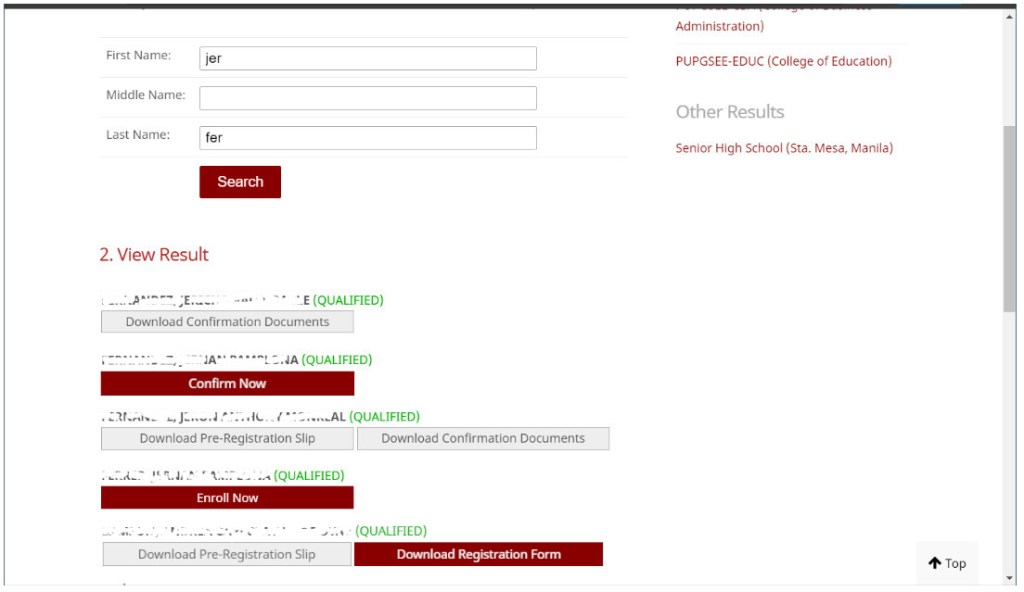 STEP 1. Search for name at https://www.pup.edu.ph/iapply/results/pupcetbsc2020. First two letters are acceptable