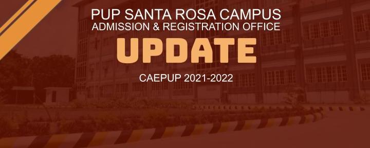 All submitted Entrance Credentials are still for verification. Officially Enrolled Freshmen will receive email notification about the procedure on how to access the PUP Student Information System(SIS) and will also be posted via the PUP Santa Rosa Campus blog site(https://pupsrc101.school.blog/) … Continue reading CAEPUP 2021-22 ADVISORY no.10